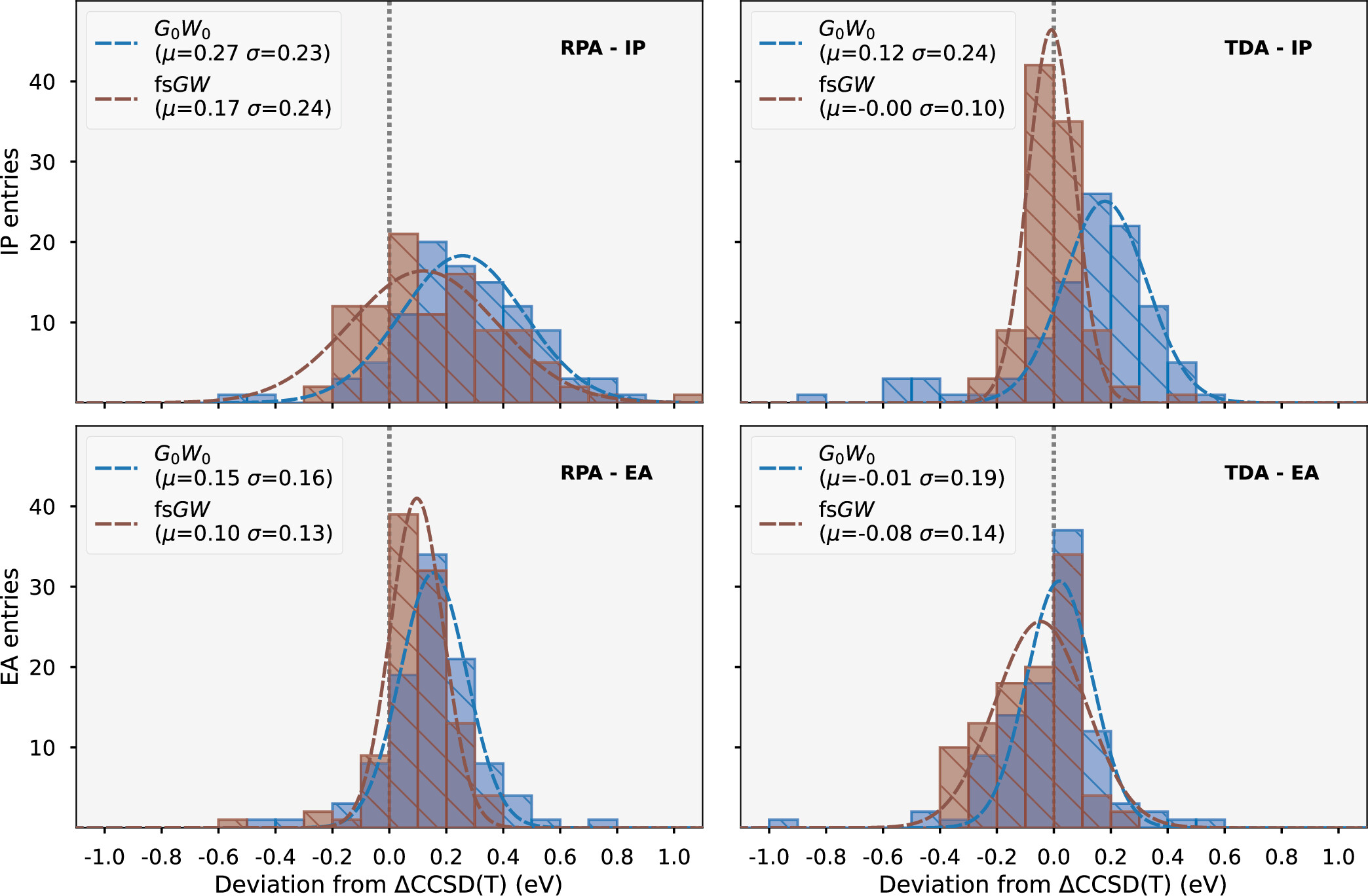 van Setten, M. J.; Caruso, F.; Sharifzadeh, S.; Ren, X.; Scheffler, M.; Liu, F.; Lischner, J.; Lin, L.; Deslippe, J. R.; Louie, S. G.; Yang, C.; Weigend, F.; Neaton, J. B.; Evers, F.; Rinke, P. GW100: Benchmarking G0W0 for Molecular Systems. J. Chem. Theory Comput. 2015, 11, 56655687,  DOI: 10.1021/acs.jctc.5b00453