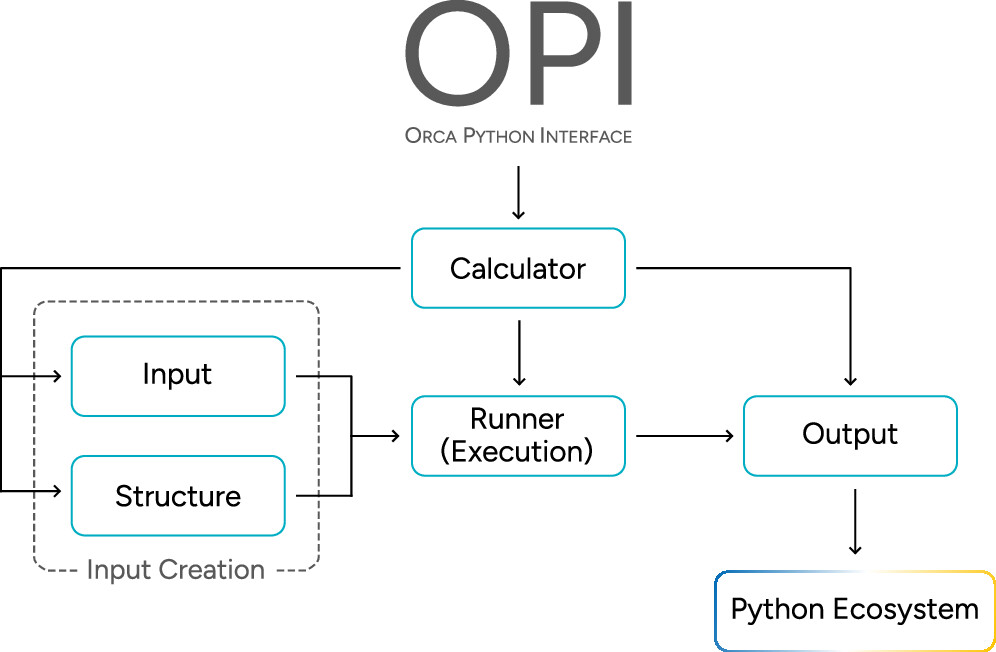 The OPI code is freely available as open source on GitHub (https://github.com/faccts/opi) and via PyPI (https://pypi.org/project/orca-pi). An online documentation of the project can be found at https://www.faccts.de/docs#opi.