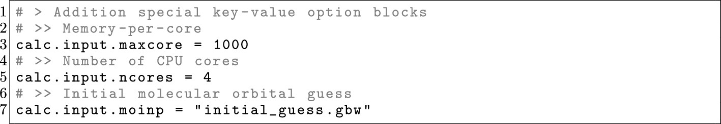 Figure 5. OPI example of how to add the maxiter options from ORCA’s %geom block to a job definition in OPI.
