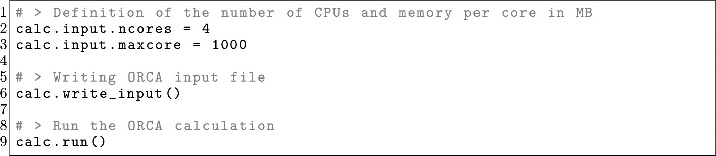 Figure 11. OPI example showing how to create the ORCA input and execute the job after configuring the compute resources.