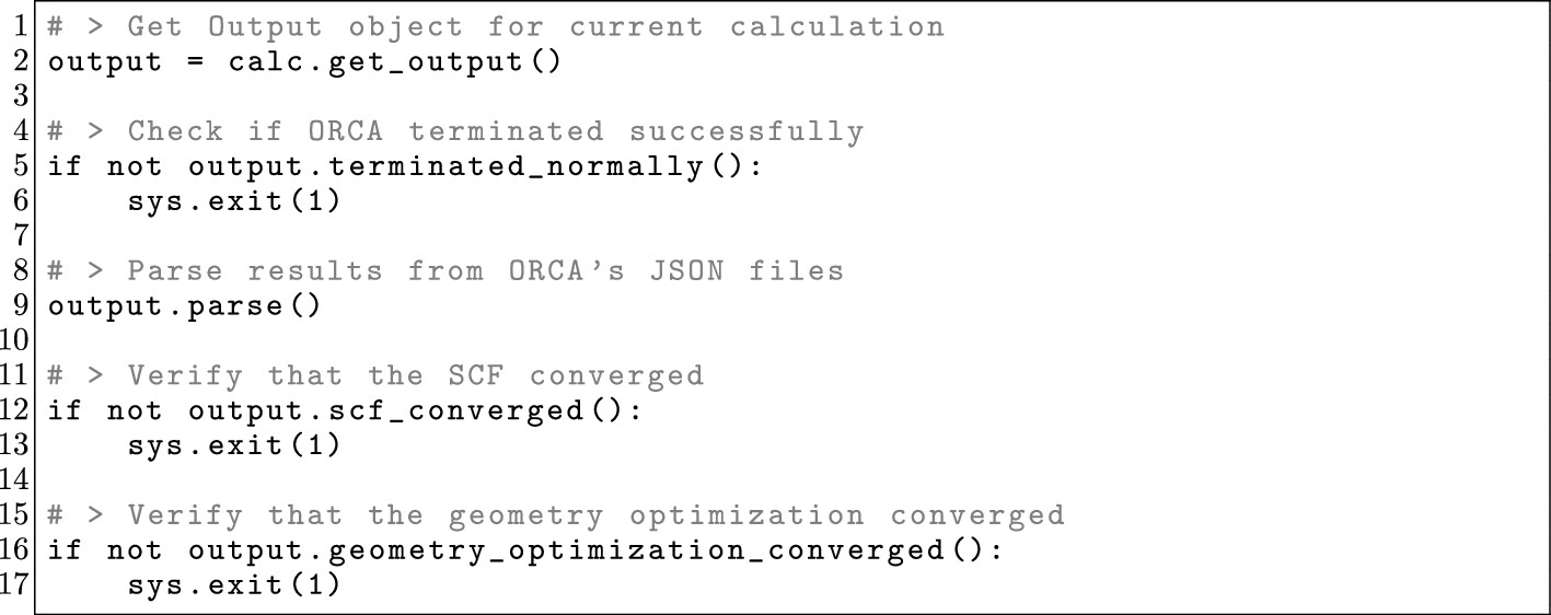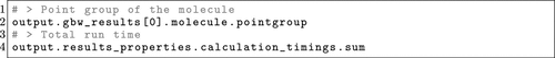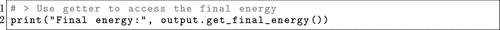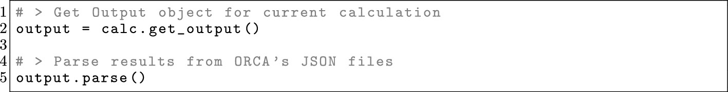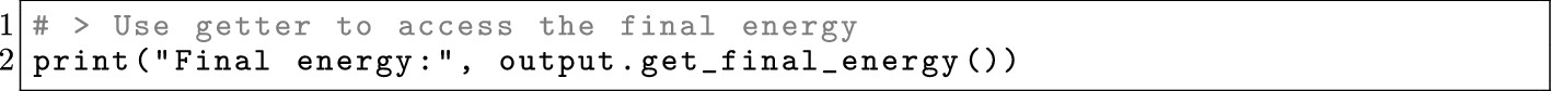 Figure 15. OPI has a series of getter methods to swiftly fetch properties from completed ORCA calculations. This example show the get_final_energy() method, which returns the final energy of the final structure.