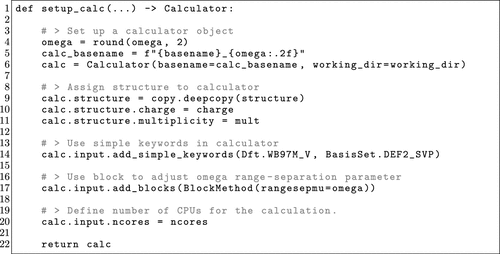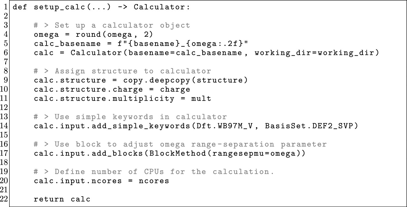 Figure 23. Single-point calculator setup from the OPI script to perform the optimal tuning workflow described in Section 5.2.