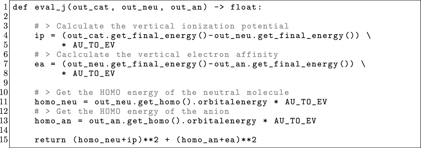Figure 24. Function body for evaluation of J2(ω) from the OPI script to perform the optimal tuning workflow described in Section 5.2.