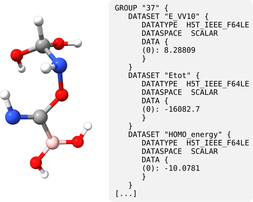| 2. | A structured property file, which contains computed quantities such as energies, thermochemical, and spectral data. This file can also be converted to JSON format. | ||||
