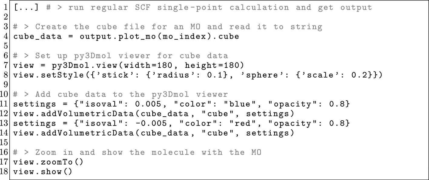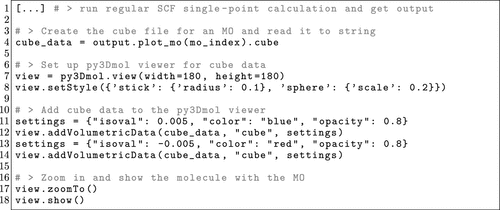 Figure 29. Function calls for cube file generation and visualization within a Jupyter notebook.