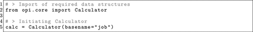 Figure 12. OPI example showing the creation of an Output from an existing Calculator object and parsing of the respective JSON files.