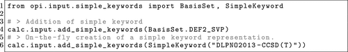 Figure 7. A code example showcasing how to add not defined or arbitrary input to the ORCA input in OPI.