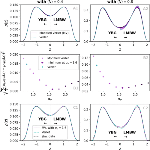 Given the challenges of directly approximating the free energy functional, it is not surprising that machine-learning (ML) methods are nowadays being exploited to either learn the free energy functional (13) or directly establish the connection between the one-body density and the direct correlation function (14,15)─the latter being the quantity required as input to the Euler–Lagrange (EL) equation for the density profile. Applications to specific systems, such as charged (16) or patchy (17,18) particles have proven quite successful. (For further details on machine learning in DFT we direct the reader to the recent review of Simon and Oettel. (19)) While ML approaches can be effective for interpolating and extrapolating simulation data they retain a certain “black box” character which does not reveal to the user the fundamental mechanisms at work in the many-body system. Consequently the desire to have a first-principles density functional scheme still remains.