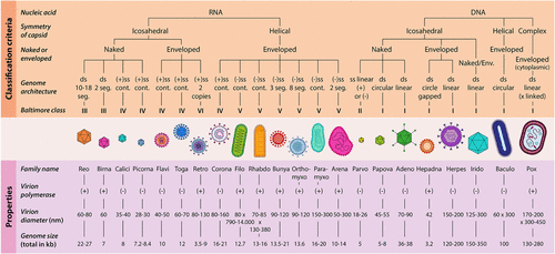 Figure 1. Overview of virion classification and their properties (Ramoji, A., Pahlow, S., Pistiki, A., Rueger, J., Shaik, T. A., Shen, H., Wichmann, C., Krafft, C.,& Popp, J. (2022). Understanding viruses and viral infections by biophotonic methods. Translational Biophotonics, 4(1–2), e202100008. 10.1002/tbio.202100008). Reprinted from ref (2).