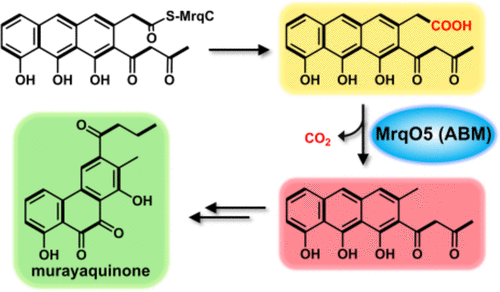 Decarboxylase Activity of an Antibiotic Biosynthesis Monooxygenase Family Protein in the Biosynthesis of the Type II Polyketide Murayaquinone