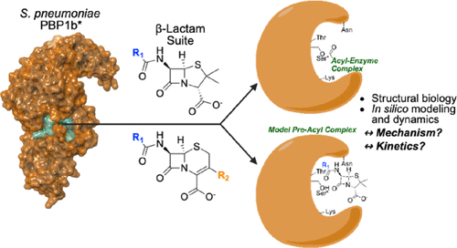 Structural and Dynamics Analyses of β-Lactam Inhibition of Streptococcus pneumoniae Penicillin-Binding Protein 1b (PBP1b) Guide Interrogation of Structure–Activity Relationships