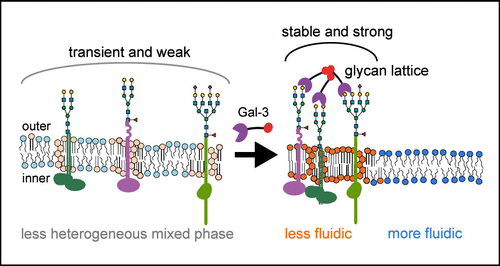 The plasma membrane is an important interface that integrates extracellular biochemical input with biophysical organization to regulate cell behavior. Galectin-3, a multivalent glycan-binding protein, can influence both events through the formation of extracellular glycan lattices on the surfaces of glycosylated cells. Although such lattices have been proposed to reshape membrane organization, their impact on nanoscale membrane phase behavior has remained difficult to quantify. Here, we establish a link between Galectin-3 lattice formation and the remodeling of plasma membranes by using imaging fluorescence correlation spectroscopy (ImFCS) to measure diffusion coefficients of a series of fluorescently labeled probes that partition into ordered or disordered regions of the cell membrane. Across several human cell types (BeWo, BxPC3, THP-1, and HEK293T), we observed that Galectin-3 induced significant changes in the lateral mobility of membranes in a manner dependent on the capacity of Galectin-3 to oligomerize and bind glycans, and that specific glycoproteins can play outsized contributing roles. Membrane regions enriched in Galectin-3 exhibited reduced diffusion, suggesting glycan lattices can serve as nucleation sites for ordered, raft-like microdomains. Finally, we also reveal that these Galectin-3-induced changes to membrane dynamics significantly amplifies Ca2+ triggered scrambling of phosphatidylserine exposure. Together, these findings identify Galectin-3 as an extracellular phase organizer that translates glycan recognition into nanoscale mechanical remodeling of the plasma membrane, potentially serving as a generalizable mechanism for fine-tuning cell behavior.