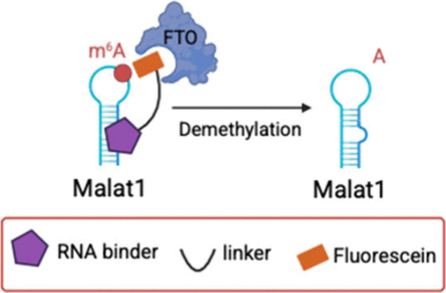 The m6A modification plays key roles in RNA metabolism and function and is implicated in various human diseases. In this study, we reported a novel molecular glue strategy for transcript-specific m6A editing using synthetic bifunctional molecules containing an RNA-targeting moiety and a ligand that recruit an endogenous m6A erasing enzyme. Through cyclic γ-AApeptide library screening, we identified a novel peptidomimetic binder to the long noncoding RNA MALAT1 A2577 region, which has a high m6A level. We developed a bifunctional molecular glue by coupling the identified MALAT1-binding cyclic γ-AApeptide to fluorescein, a reported binder to the m6A eraser FTO. We demonstrated that this bifunctional molecular glue successfully recruited FTO to the target RNA site, achieved the m6A erasing, disrupted HNRNPC-MALAT1 binding, and destabilized MALAT1. We anticipate that this novel molecular glue strategy will offer a new direction in developing molecules to regulate RNA modifications.