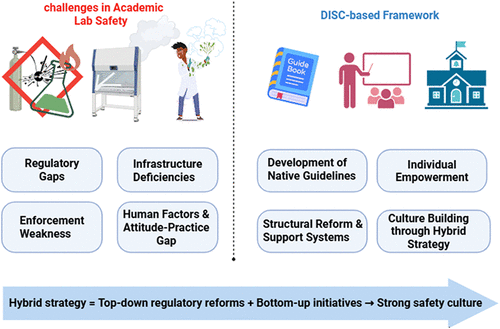 Laboratory safety in academic settings, particularly in developing countries, is of paramount importance due to major infrastructural challenges and the emergence of new technologies. This systematic review was conducted following the systematic reviews and meta-analyses (PRISMA) preferred reporting standard and incorporated gray literature using the snowballing technique. A total of 14 articles were ultimately reviewed. A synthesis of the literature review findings and an examination of Iran’s domestic regulations were employed to develop a proposed framework for advancing chemical safety in academic laboratories. The analysis revealed that the absence of specific, mandatory regulations for small-scale academic chemical users, coupled with structural challenges such as fragmented responsibilities, weak enforcement, severe infrastructure deficiencies (e.g., 50% malfunctioning fume hoods), a profound attitude-practice gap (74% vs 24%), and the identification of human factors as the primary cause of incidents, poses a serious threat to safety. By identifying the challenges in academic laboratory safety, this study proposes a practical, multifaceted, and context-specific framework based on the DISC model, encompassing the development of native guidelines, individual empowerment, and the establishment of institutional support systems to strengthen the safety culture. The study’s final finding indicates that adopting a hybrid strategy, integrating both top-down regulatory reforms and bottom-up initiatives, can provide an effective pathway for entrenching a robust safety culture within this specific context.