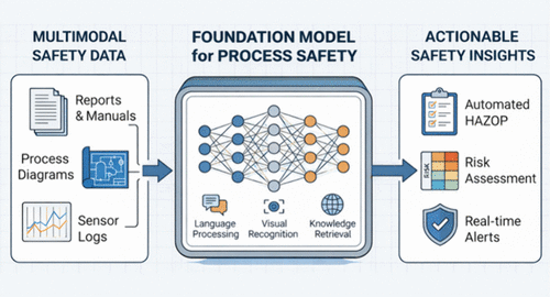 The chemical process safety community is entering a new era driven by foundation models, shifting from task-specific, label-intensive deep learning to adaptable pretrained reasoning frameworks. This Commentary surveys how large language models (LLMs) and vision foundation models (VFMs) can address persistent bottlenecks in process safety, including data scarcity, rare-event imbalance, and limited transferability across facilities. From a language perspective, retrieval-augmented generation (RAG) enables models to operationalize unstructured industrial “dark matter”, such as incident narratives, maintenance logs, management-of-change records, and standard operating procedures, into evidence-linked outputs that support auditable root cause analysis (RCA) and scalable, semiautomated hazard and operability study (HAZOP) workflows. From a vision perspective, promptable VFMs and multimodal systems advance safety monitoring beyond binary detection toward semantic segmentation and contextual discrimination, enabling interpretable, morphology-aware characterization of dynamic threats. Despite this promise, deployment in safety-critical environments demands rigorous scrutiny. We identify key barriers including hallucination risks, ontology drift, privacy, and governance constraints, as well as the inadequacy of generic benchmarks for engineering-grade requirements in reliability, traceability, and failure transparency. We also propose a roadmap centered on “data as infrastructure”, emphasizing expert-supervised synthetic supervision, domain-shaped evaluation and alignment protocols, and hybrid workflows that integrate physical knowledge and validation layers. Ultimately, foundation models should be conceptualized not as autonomous decision-makers but as transparent, context-aware reasoning layers that empower human experts to convert fragmented industrial data into actionable safety intelligence.