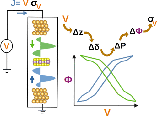 It can be said that the interface is the device. A holistic understanding of interfacial interactions and electronic structure of 2D materials with electrodes is far from complete but is necessary for tailored electronic devices, including in memristors for neuromorphic computing. Here, we develop a computational protocol to study the hysteretic behavior and charge carrier transport mechanisms of the MoS2/Au(111) junction under applied electric fields using first-principles calculations. We show that even in the absence of defects, formation of conducting bridges, or significant atomic reconstruction, the pristine MoS2/Au(111) junction shows hysteresis in the induced polarization, the electron barrier heights, and the carrier transport. A primary finding from our calculations is the modulation of the Schottky barrier and electron tunneling barrier as a mechanism behind the resistive switching mechanism of the pristine MoS2/Au(111) junction. We also show that changes of interfacial dipole moments with an external electric field contribute to the memory effect by lowering the electron barriers. Our results indicate that in the absence of defects, electric-field-induced relaxation of the interlayer spacing provides the means for spontaneous polarization. Based on this understanding of the MoS2/Au(111) junction, we propose that a back-to-back double Schottky barrier ferroelectric tunnel junction diode can be used to phenomenologically model the characteristics of the MoS2/Au(111) heterojunction. Our study has implications for revealing the physical origins of the onset of hysteretic properties of heterostructures based on low-dimensional materials, providing a more complete understanding of the mechanisms in resistive switching.