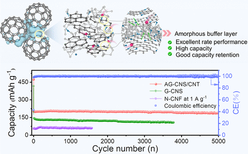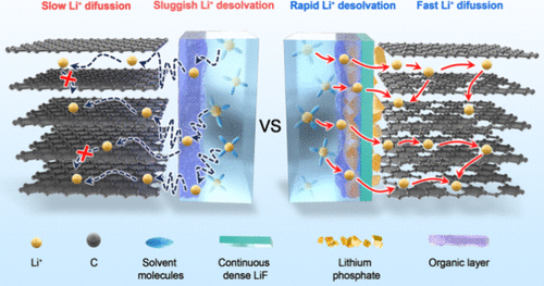 Fe–Mn-based phosphate material (Na4Fe3–xMnx(PO4)2(P2O7)) demonstrates a significantly higher average voltage and energy density compared to Fe-based phosphate material (Na4Fe3(PO4)2(P2O7)). However, its practical application is hindered by issues such as anomalous prolongation of Mn2+/Mn3+ deintercalation platform and poor cycling stability, and the failure mechanisms of Fe–Mn-based phosphate material are still shrouded in mystery. This research uncovers the relaxative internal friction behavior of Mn2+/Mn3+ redox during the structural evolution of Na4Fe1.5Mn1.5(PO4)2(P2O7), highlighting its dual nature. The three Mn sites within the lattice exhibit distinct coordination environments, reactivities, and resistances to Jahn–Teller distortion, leading to relaxative internal friction during sodium extraction. The distortion of [MnxO6] octahedra facilitates Na+ diffusion but also results in lattice mismatch and voltage hysteresis, causing rapid electrode degradation. Additionally, this study identifies a connection between relaxative internal friction and the orbital electron behavior of Mn3+ under Jahn–Teller distortion. To mitigate adverse effects, typical 2p/3d/4d elements are screened, revealing that Cr3+ effectively reduces [MnO6] distortion by inhibiting Mn3+ orbital splitting, thus decreasing voltage hysteresis and enhancing cycling stability. Furthermore, targeted defect engineering is employed to eliminate impurities and improve Na+ migration. These findings provide valuable insights and strategies for the practical application of Fe–Mn-based phosphate cathode materials.