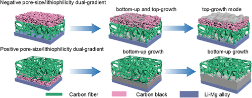 Achieving uniform deposition of metallic Zn and maintaining interfacial chemical stability are critical to addressing the dual challenges of dendrite formation and severe side reactions in aqueous Zn-ion batteries (AZIBs). Porous structure has been shown to mitigate these issues, but the relationship between dynamic deposition behavior of Zn and electrochemical performance in porous Zn anodes remains poorly understood. Herein, a selective phase etching strategy was employed to fabricate self-supporting porous Zn anodes (P–Znx, x = 20, 40, 55 and 70) with a three-dimensional bicontinuous ligament/pore structure. Through multiple in situ techniques (X-ray diffraction, impedance spectroscopy and optical microscopy) with finite element simulation, we investigated the dynamic nucleation and growth behavior of metallic Zn on the porous Zn anode. As benchmarked with a planar Zn free of pores, the optimized P–Zn40 anode with abundant nucleation sites and strong (101) preferred orientation shows lower nucleation overpotential and uniform Zn plating without dendrite formation. Furthermore, the P–Zn40 anode delivers excellent cycling stability for 1000 h at 0.5 mA cm–2 in symmetric cells. More importantly, coupled the P–Zn40 anode with a NH4+-intercalated V2O5 cathode, the full cell displays superior cycling performance (1000 cycles with capacity retention of 85.9%) and rate capability, with negligible H2 evolution as revealed by online differential electrochemical mass spectrometry. These findings provide valuable insights into the design of high-performance anodes for AZIBs.