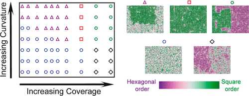 The surface curvature of membranes, interfaces, and substrates plays a crucial role in shaping the self-assembly of particles adsorbed on these surfaces. However, little is known about the interplay between particle anisotropy and surface curvature and how they couple to alter the free energy landscape of particle assemblies. Using molecular dynamics simulations, we investigate the effect of prescribed curvatures on a quasi-2D assembly of anisotropic patchy particles. By varying curvature and surface coverage, we uncover a rich geometric phase diagram, with curvature inducing ordered structures entirely absent on planar surfaces. Large spatial domains of ordered structures can contain hidden microdomains of orientational textures imprinted by the surface on the assembly. The dynamical landscape is also reshaped by surface curvature, with a glass-like state emerging at modest densities and high curvature. Changes to the symmetry of the surface curvature are found to result in distinct structures, including phases with mesoscale ordering. Our findings show that the coupling between surface curvature and particle geometry opens an unexplored space of morphologies and structures that can be exploited for material design.