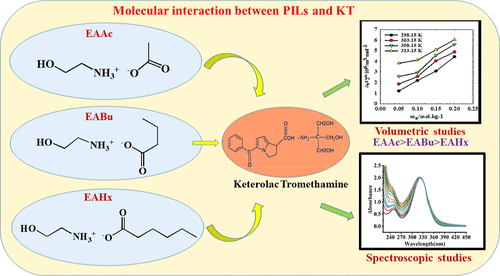 Molecular Interactions of Ketorolac Tromethamine with Protic Ionic Liquids: Combined Volumetric and Spectroscopic Studies