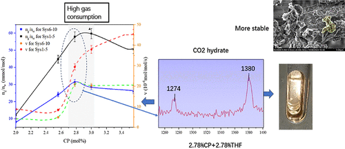 Hydrate-based ocean carbon sequestration is a highly effective approach to carbon capture and storage (CCS). The key to its success lies in the efficient formation of CO2 hydrates in seawater and their stability. This research integrated macroscopic experiments using CP (cyclopentane) hydrate crystal seeds and THF (tetrahydrofuran) as a combined promoter with microscopic analyses via Raman spectroscopy and scanning electron microscopy (SEM). The goal was to thoroughly examine how different concentrations of the solid–liquid promoters affect CO2 hydrate formation in the saltwater system, ultimately identifying the most effective concentration mix. Additionally, we studied how CO2 hydrates from various systems settle and disperse over time under simulated marine conditions. The results show that the combination of 2.78% CP and 2.78% THF is the most effective, leading to a CO2 gas consumption of 23.28 mmol in the saltwater system, which is 33% higher than in the pure water system, and the average formation rate improves by 40%. CO2 hydrates formed in the saltwater system also show a significant increase in density under a pressure of 5.50 MPa and exhibit superior stability in simulated marine sedimentation experiments. In contrast, CO2 hydrates formed in pure water are more prone to decomposition, which hinders their long-term storage.