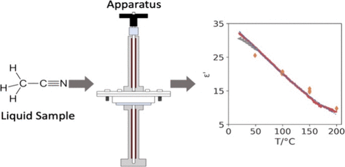 The dielectric constant measures the influence of an electric field on a material. As it probes solute–solvent interactions within a fluid, it could shed light on reactions such as the hydrothermal conversion of biomass to biofuels. However, such measurements are difficult to obtain due to the low temperature and electrical conductivity operating limits of conventional dielectric constant apparati. An apparatus was designed to measure the dielectric constant of fluids up to 220 °C consisting of a cylindrical resonant cavity that operates in TM010 mode at 1 GHz. The liquid sample is contained in a bespoke quartz tube reactor with an internal thermocouple and a pressure transducer. The sample temperature is manipulated with a dual zone heating unit. The system was validated with pure subcritical water between 20 to 220 °C and was employed to in situ detect changes in the dielectric constant of five organic solvents up to 200 °C, beyond values currently available in the literature. The maximum deviation from reference data is approximately 5% for water. The maximum deviation extends to 20% with less polar organic solvents when compared to values using single-Debye models in high-temperature regions.