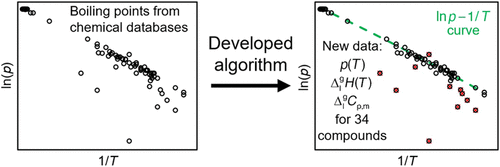 Chemical databases, such as Reaxys and SciFinder, contain extensive physicochemical data on organic compounds, including normal and reduced pressure boiling points. Recently, we proposed an approach for extracting the vaporization enthalpies and vapor pressures from these data. Although the raw values from the databases are typically obtained by relatively simple, nonspecialized equipment, the errors in the vaporization enthalpies and vapor pressures derived according to this procedure were estimated at the level of 2 kJ mol–1 and 20%, respectively. In this work, we discuss how this approach can complement classical experimental methods for determination of the vaporization characteristics. We used it to obtain saturated vapor pressures and vaporization enthalpies of 34 poorly studied aromatic compounds between 298 K and their normal boiling point. We focused on substances whose vaporization characteristics were not reported before, were available at a single temperature, or deviated significantly from expected values. Where possible, a comparison with the existing literature data and estimation methods was performed.