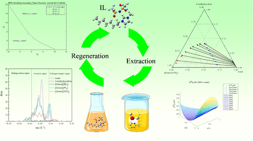 To recover 2-methylpyridine from aqueous solution using an extraction process, three hydrophobic imidazolium-based ionic liquids (ILs), 1-octyl-3-methylimidazolium tetrafluoroborate ([Omim][BF4]), 1-octyl-3-methylimidazolium hexafluorophosphate ([Omim][PF6]), and 1-octyl-3-methylimidazolium bis(trifluoromethylsulfonyl)imide ([Omim][NTf2]), were selected as the extractants. The liquid–liquid equilibrium (LLE) investigation was conducted for ternary mixtures (water + 2-methylpyridine + hydrophobic imidazolium-based ionic liquids) at a temperature of 298.15 K and pressure of 101.3 kPa. Distribution coefficient and selectivity computed with the ascertained LLE tie-line data were employed to evaluate the separation performance of the ILs. The results indicated that [Omim][NTf2] exhibited superior extraction efficiency followed by [Omim][PF6] and [Omim][BF4]. The tie-line data was fitted by the NRTL model with the most root-mean-square deviation value of 0.9995%. Additionally, the intermolecular interactions between the ILs and 2-methylpyridine were explored by quantum chemical calculations. The findings demonstrate that the hydrophobic ILs exhibit significant potential as sustainable extractants in separating 2-methylpyridine from an aqueous solution.