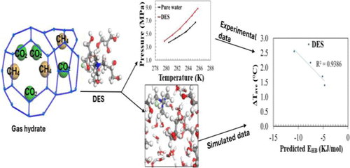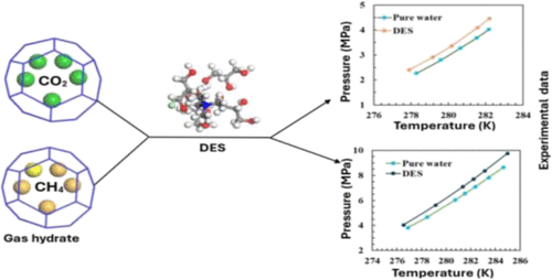 The effects of four deep eutectic solvents (DESs) on the phase equilibrium conditions of CO2 and CH4 gas hydrates were investigated. The mixtures of tetramethylammonium chloride (TMAC) and tetrapropylammonium bromide (TPAB) as hydrogen-bond acceptors with glycerol and ethylene glycol (EG) as hydrogen-bond donors were used to formulate the DESs. The combinations of TMAC/glycerol, TMAC/EG, TPAB/glycerol, and TPAB/EG were all made at a 1:3 molar ratio. The concentrations of DESs in the aqueous solutions were 2 and 4 wt %. The hydrate dissociation conditions for CO2 and CH4 systems were measured using an isochoric pressure-search method in the temperature ranges of (277.85 to 282.97) K and (276.03 to 285.15) K, respectively, and pressure ranges of (2.03 to 5.28) MPa and (3.71 to 10.39) MPa, respectively. All the studied DESs demonstrated the thermodynamic gas hydrate inhibition effect on CO2 and CH4 hydrate formation. The gas hydrate inhibition ability ranking from the highest to the lowest was found to be in the order of: TMAC/glycerol > TMAC/EG > TPAB/glycerol > TPAB/EG. This result proved that DESs have great potential to be effective green thermodynamic hydrate inhibitors.