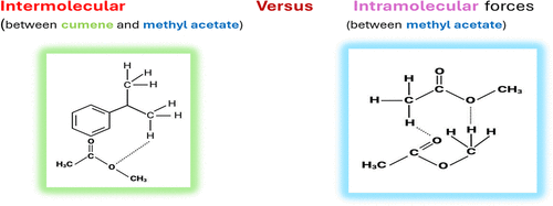 The viscosity (η), activation energy (Ea), density (ρ), ultrasonic velocity (U), and refractive index (nD) were determined for binary liquid mixtures of cumene (CM, an alkylbenzene) with ethyl acetate (EA) or methyl acetate (MA) over different mole fractions of CM (0.08–0.87) in a wide temperature range (298.15–313.15 K). The increasing trend in η with the mole fraction of CM was correlated with the strengthening of the molecular interactions between the constituent components. Various theoretical models were utilized to predict the deviation in the properties of the binary mixtures over the compositions. Typically, the Kandoll and Monroe models predicted lower values for η, while models like Gruenberg and Nissan suggested higher values for the CM + MA binary mixture. Likewise, the usefulness of the models in predicting other properties is detailed. The average percentage of deviation (APD) was used to predict the most suitable model for η, U, and nD. The various acoustical properties and excess parameters were calculated and interpreted in terms of charge transfer, dipole–dipole, and dipole-induced dipole interactions. The results suggested that the presence of both aryl and aliphatic moieties in CM contributed to the intermolecular interactions with nearly nonpolar (EA/MA) molecules.