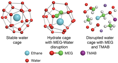 The oil and gas industries can benefit from the potential of storing clathrate hydrate gas by managing it with precise knowledge of thermodynamic conditions or preventing its formation in gas transmission lines. In this study, despite the assurance of the thermodynamic inhibition property of MEG on the formation of ethane hydrate, the effect of TMAB on the stability or decomposition of ethane hydrate in the presence of water and MEG was investigated for the first time across six different experimental systems with combinations of 1, 2, 3, and 5 wt % of TMAB from the group of quaternary ammonium salts. The reactor pressure in each system ranged from 0.5 to 3.5 MPa. The minimum temperature of the experiments for maximum clathrate hydrate formation was determined to be 272 K. According to the obtained data, the shift of the equilibrium diagram of ethane hydrate from 1 to 5 wt % changes in favor of the inhibition of stability and inhibition performance. The maximum inhibition of TMAB on ethane hydrate was observed in the presence of MEG and water in combinations close to stoichiometric ratios.