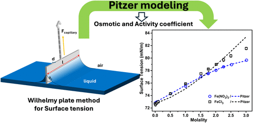 Thermodynamic Modeling of Osmotic Coefficients and Surface Tension of the Ferric Chloride–Water and Ferric Nitrate–Water Systems Using the Pitzer Model