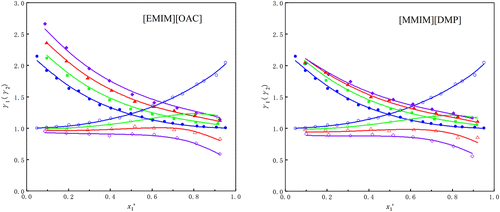This study explores the separation of the ethanol–methyl acetate azeotrope using ionic liquids as entrainers. Vapor–liquid equilibrium (VLE) data for the binary system and ternary systems containing 1-butyl-3-methylimidazolium dibutyl phosphate ([BMIM][DBP]) and 1-ethyl-3-methylimidazolium diethyl phosphate ([EMIM][DEP]) were measured at 101.3 kPa. Both ionic liquids effectively eliminated azeotropic behavior, with [EMIM][DEP] showing superior performance across the full composition range, attributed to stronger hydrogen bond basicity and reduced unfavorable interactions. Comparison with literature data for [EMIM][OAc], [BMIM][OAc], [EMIM][MeSO3], and DMSO confirmed that ionic liquids generally outperform DMSO. For [BMIM]+-based systems, separation efficiency is as follows: [EMIM][OAc] ≈ [BMIM][OAc] > [BMIM][DBP] > [EMIM][MeSO3] > DMSO. For [EMIM]+-based systems, [EMIM][DEP] provides higher relative volatility in ethanol-rich regions, highlighting the selective capability of the [DEP]− anion. The VLE data were well correlated by the NRTL model, with overall average relative deviations below 5%, and thermodynamic consistency tests confirmed data reliability. These findings indicate that [DEP]−-based ionic liquids are promising entrainers for high-purity methyl acetate production via extractive distillation.