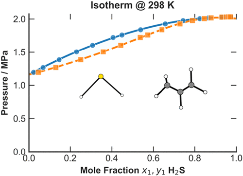 The study of the phase behavior of the binary system hydrogen sulfide (H2S)–propylene (C3H6) is necessary for the optimization of gas sweetening processes and petrochemical streams. This study presents new isothermal vapor–liquid equilibrium (VLE) measurements for this system at 278.21, 298.12, 323.06, and 348.13 K, at pressures up to 5.8 MPa. The data were obtained using a precise static-analytic method with two magnetic capillary samplers (ROLSI(R)) for phase analysis by gas chromatography. The measurement uncertainties are u(T)= 0.02 K for temperature, u(P)= 0.0009 MPa for pressure, and u(x,y) = 0.001 for molar compositions. To model this data, a ϕ–ϕ approach utilizing the translated consistent Peng–Robinson (tc-PR) equation of state was used. For the liquid phase, we compared the classical van der Waals mixing rules against the Wong-Sandler mixing rules coupled with the NRTL model. Subsequently, a multiparametric equation of state was utilized to extend the analysis. After optimizing the parameters of each model by fitting them to experimental data, the final models accurately describe the phase behavior of the system. Their reliability and suitability for industrial process design and simulation are thereby demonstrated.