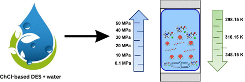 Carbohydrates are biomolecules with different applications and play a fundamental role in the development of biotechnology and industry. In this work, experimental analyses of density, viscosity, and speed of sound in ternary solutions composed of carbohydrates (d-fructose, d-glucose, sucrose, or xylitol), choline chloride (ChCl), and water were conducted in the temperature range of 278.15 to 323.15 K at atmospheric pressure. Apparent molar volumes (Vϕ0) and apparent molar compressibility (κs,ϕ0) at infinite dilution and B-coefficient were calculated from the experimental data to obtain the transfer parameters (ΔVϕ0, Δks,ϕ0, and ΔB) for the carbohydrates. The limiting apparent molar expansibility (Eϕ0), the isobaric expansion coefficient (αp), and Hepler’s relation were also determined to study the effects caused by temperature. These parameters were chosen to understand the behavior of carbohydrates in the presence of ChCl in an aqueous medium, aiming to elucidate mixing effects resulting from intermolecular interactions in solutions. The results were interpreted in terms of saccharide-ChCl-water interactions.