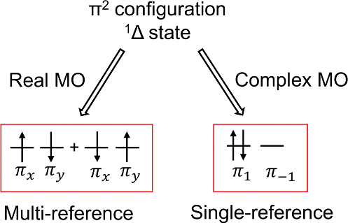 In nonrelativistic and scalar-relativistic electronic structure calculations, molecular orbitals (MOs) are usually chosen as real functions and multideterminant wave functions are required to describe multireference (MR) states. However, certain specific MR states in atoms, linear molecules, and nonlinear molecules possessing real two-dimensional irreducible representations can be represented by a single determinant when complex MOs are employed. For atoms and linear molecules, MOs that are eigenfunctions of the angular momentum operator are used, and the resulting single-determinants states are labeled by the angular momentum quantum numbers. Within density functional theory (DFT), an angular-momentum symmetry-broken method, analogous to the spin-symmetry broken method, is also developed for selected MR states in atoms and linear molecules. The performance of MP2, CCSD, CCSD(T), and DFT using complex MOs is assessed for low-spin states of some p- and d-block atoms, diatomic and nonlinear molecules, and for high-spin states of selected transition-metal diatomic molecules. CCSD(T) with complex MOs generally yields highly accurate results when applicable, while DFT provides reasonable accuracy with appropriately chosen exchange-correlation functionals.
