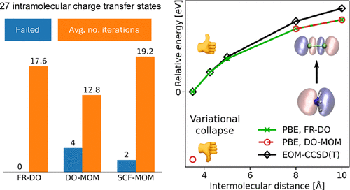 Variational optimization of orbitals in time-independent density functional calculations of excited electronic states presents a significant challenge, as excited states typically correspond to saddle points on the electronic energy landscape. The optimization can be particularly difficult if the excitation involves significant rearrangement of the electron density, as for charge-transfer excitations. A simple strategy for variational orbital optimization of excited states is presented. The approach involves minimizing the energy while freezing the orbitals directly involved in the excitation, followed by a fully unconstrained saddle-point optimization. Both steps of this freeze-and-release strategy are carried out using direct optimization algorithms with the same computational scaling as ground-state calculations. The performance of the method is extensively assessed in calculations of intramolecular and intermolecular charge-transfer excited states of organic molecules and molecular dimers using a generalized gradient approximation functional. It is found that the freeze-and-release direct optimization approach can avoid variational collapse to spurious, charge-delocalized solutions for cases where conventional algorithms based on the maximum overlap method fail. For intermolecular charge transfer, the orbital-optimized calculations are found to provide the correct dependency of the energy on the donor–acceptor separation without requiring long-range exact exchange, something common time-dependent density functional theory approaches fail to achieve.