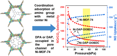 The Weakening Effect of the Coordinate Modification of Amino Ligands on the Porosity and NO Adsorptive Separation Performance of Ni-MOF-74