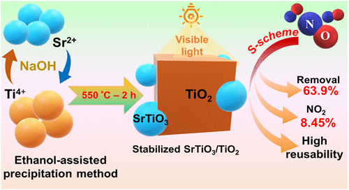 One-Step Construction of SrTiO3–TiO2 Interfaces for Efficient NO Removal via Visible-Light Photocatalysis