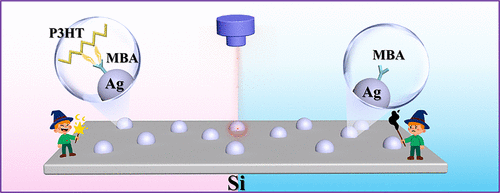 A silver/mercaptobenzoic acid/poly(3-hexylthiophene) (Ag/MBA/P3HT) composite system with a tunable concentration of P3HT was fabricated via layer-by-layer self-assembly for surface-enhanced Raman scattering (SERS) applications. Notably, the SERS intensity of MBA systematically increased and reached a maximum at a P3HT concentration of 10–5 g/mL. Mechanistic studies revealed that the incorporation of P3HT significantly enhanced the electronic conjugation within the composite system through π–π interactions between P3HT and MBA molecules. The improved electron delocalization facilitated better matching between molecular vibrational excited states and charge transfer (CT) processes, thereby promoting the efficient transfer of electrons from the Ag substrate to MBA molecules. As the P3HT concentration further increased, the extended conjugation network enhanced the CT efficiency in the Ag/MBA/P3HT system, resulting in a strong positive correlation between the SERS intensity and P3HT concentration. This study provides valuable theoretical insights and practical strategies for developing high-performance SERS-active substrates.