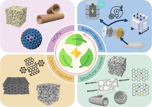 The increasing demand for energy has accelerated the development of advanced materials, particularly porous carbon materials, for energy storage and conversion. Supercapacitors (SCs) have garnered significant attention in recent years due to their high energy storage capacity and rapid charge–discharge cycles. Among various porous materials, hyper-cross-linked polymers (HCPs) have emerged as promising precursors for carbon materials due to their tunable porosity, diverse chemical synthesis routes, and compatibility with various activation and composite-forming processes involving metals or metal oxides. Carbon materials derived from HCPs have demonstrated enhanced electrochemical double-layer properties, long-term cycling stability, and high-rate performance when fabricated by using optimized processing techniques. However, comprehensive reviews focusing on HCP-based carbon materials for SC applications remain limited. Therefore, this Review systematically examines the synthesis strategies for HCPs, the fabrication approaches for carbon and composite materials, and their electrochemical performance in SCs. Furthermore, a categorized comparison of the resulting materials’ performance is provided. Lastly, a perspective is presented on both the fabrication processes and the performance optimization of SCs. This Review aims to inspire researchers to explore advanced carbon preparation methods using HCP materials and to develop effective strategies for improving SCs’ performance.