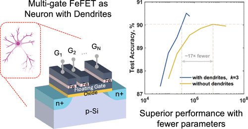 Although inspired by neuronal systems in the brain, artificial neural networks generally employ point-neurons, which offer computational complexity far less than that of their biological counterparts. Neurons have dendritic arbors that connect to different sets of synapses and offer local nonlinear accumulation – playing a pivotal role in processing and learning. Inspired by this, we propose a novel neuron design based on a multigate ferroelectric field-effect transistor that mimics dendrites. It leverages ferroelectric nonlinearity for local computations within dendritic branches while utilizing the transistor action to generate the neuronal output. The branched architecture enables smaller crossbar arrays in hardware integration, improving efficiency. Using an experimentally calibrated device-circuit-algorithm cosimulation framework, we demonstrate that networks incorporating our dendritic neurons achieve superior performance compared to much larger networks without dendrites (∼ 17× fewer trainable weight parameters). These findings suggest that dendritic hardware can significantly improve computational efficiency and learning capacity of neuromorphic systems optimized for edge applications.